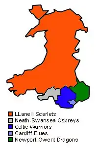 Celtic Warriors was acquired and liquidated by the WRU at the end of the 2003–04 season, leaving four Welsh regional sides and redrawn catchment areas.