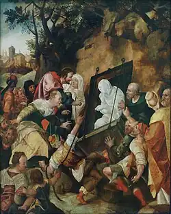 His only extant painting is a Resurrection of Lazarus (in the Staatliche Kunsthalle Karlsruhe), signed and dated 1582 or 1587.