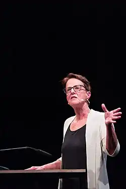 Brown's work has been translated into more than twenty languages and has received many awards. Brown served as Council Member of the American Political Science Association (2007–09) and as Chair of the UC Humanities Research Institute Board of Governors (2009–11).[18] In 2012, her book Walled States, Waning Sovereignty won the David Eastman Award.[19] In 2017, her book Undoing the Demos won the Spitz Prize for the best book in liberal and/or democratic theory.[20] Brown received the 2016 Distinguished Teaching Award, UC Berkeley's most prestigious honor for teaching.[21] She received a UC Presidents Humanities Research Fellowship (2017–18) and was a Guggenheim Fellow (2017–18).[22][23] In 2021 Brown received The Berkeley Citation, UC Berkeley's highest honor, for individuals who "go beyond the call of duty and whose achievements exceed the standards of excellence in their fields."[24][25]