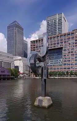 Three of her works are Grade II listed structures: the Virginia Quay Settlers Monument,[4] Timepiece in St Katharine Docks, London,[5] and the Octo sculpture and reflecting pool,[6] in Milton Keynes. The Octo is a "continuous strip of stainless steel, 12ft high, forms a sinuous foil to the Miesian purism of Stuart Mosscrop's town office buildings".[7] It is an early example of the Milton Keynes Development Corporation’s public art programme.