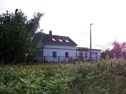 Teichwolframsdorf station was opened on 29 August 1876 as a halt and redesignated as a station in 1905. In addition to the entrance building, the station was equipped with workshops which are still partly preserved.[9] From 1953 until its closure before 1962, a railway connection from Katzendorf to Teichwolframsdorf and sächsischen Aufbereitungsbetrieben (Saxon processing operations) was used by uranium ore trains running as block trains or in groups of wagons. With the abandonment of rail traffic between Werdau and Wünschendorf (Elster), the station was closed on 30 May 1999. It is located on the outskirts of the Thuringian village of Teichwolframsdorf in the Werdau forest.