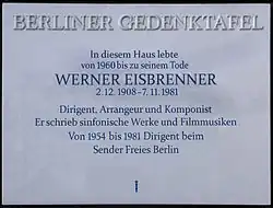 Werner Friedrich Emil Eisbrenner (2 December 1908, Berlin – 7 November 1981, West Berlin) was a German composer and conductor, best known for his film music.