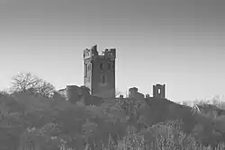 The Trier prince-elector and archbishop, Werner of Falkenstein, began building the castle in late 1401 as part of his expansion policy in the Pellenz area. Thus, the site was not in the district of Ochtendung, which belonged to Electoral Trier, but in the feudal area of the counts of Virneburg.[1]: 76–77 The castle was intended to act as a border fortress, guarding it against the principality of the Archbishop of Cologne. However, the castle never fulfilled this purpose, as the borders were realigned whilst it was being built. Later the castle was used as an administrative centre. Conrad Colbe of Boppard was probably appointed as the first Amtmann (bailiff) in 1412. From the 16th century onwards, the castle was enfeoffed to the lords of Eltz, who owned it until the 19th century. From 1966 to 1969 there was a falconry at the castle.[1]: 113 A preservation society has set itself the task of securing and renovating the dilapidated castle and, between summer 2006 and November 2007, the tower house was renovated.