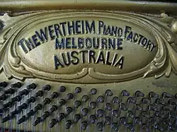 Hugo Wertheim migrated from Frankfurt, Germany to Melbourne, Australia as a reasonably wealthy man, in 1875 after being sent by his uncle, Joseph Wertheim, to travel the world as an agent for the family's sewing machine business. He opened two showrooms in Bourke & Collins Streets, importing German goods such as pianos, harmoniums and bicycles, but later focussed his attention on the demand for pianos in the then, new colony of Australia. Wertheim began importing cheap German pianos and re-badging them as "The Planet" and "Habsburg Wertheim" possibly as early as 1880.[1] Around the turn of the century, Wertheim sent his eldest son, Herbert, to learn the piano manufacturing trade in the United States and tour the continent before returning to run the new Melbourne enterprise.[3]