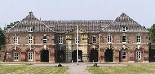- Main gate with curtain wall, bridge, tenaille, and trenches from 1718 (Jean de Bodt), renovated in 1823. Now contains the "Städtische Museum Abteilung Schillkasematte" (Local Museum Schill Case Matts). This gate is also fortified, but actually represented the connection to the city.