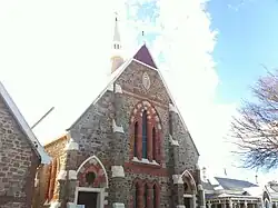 Founded by the Methodist Church as the Wesley Methodist Church, it was built in a late Victorian style in 1890[1] at a cost of A£2,695.[2] The church has walls of brick and local granite with elaborate brick window surrounds.[3] It also features gothic elements such as pointed arched entrances, a tall spire and pointed arched windows.[4] The manse was built on the eastern side of the church in 1903 at a cost of £1,250[2] in a matching architectural style.[1] Both buildings were funded by the Robinson family who held large commercial, land and legal interests in both Albany and Perth.[2]