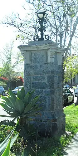 stone pillar located at Washington Boulevard and Harvard Boulevard