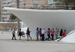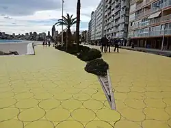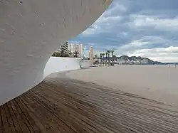 Benidorm has experienced rapid economic and urban growth in the last twenty or so years. In response to the immense rise of the tourist industry, it has become a location with an extremely high population density, but only during certain months of the year.[6] Thus, the area had been thirsting for a resolution for issues such as high traffic, drainage, and accessibility.[7] The idea for the new passageway was conceived of by Carlos Ferrater and Xavier Marti Gali in a design competition, which sought to adapt the shoreline to deal with the problems it was facing. Construction was completed in 2009.[8]