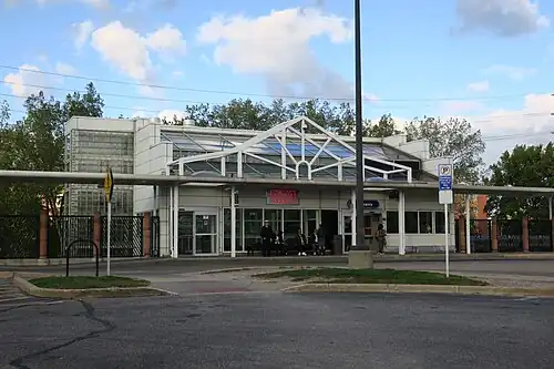 West Boulevard–Cudell station (signed as West Boulevard) is a station on the RTA Red Line in Cleveland, Ohio. The station is located on the north side of Detroit Avenue (U.S. Route 6 Alternate) at the intersection with West Boulevard in Cleveland's Cudell neighborhood.