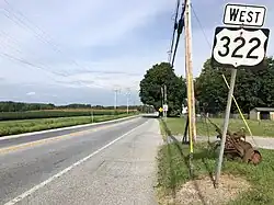 U.S. Route 322, Pennsylvania Route 82, and Pennsylvania Route 340 are the numbered roads serving West Brandywine Township. US 322 follows Horseshoe Pike along a northwest–southeast alignment across the northern and eastern portions of the township. PA 82 follows South Manor Road along a north–south alignment through the middle of the township. PA 340 follows Kings Highway along an east–west alignment along the southern border of the township.