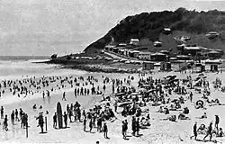 By 1873, the township had been surveyed, a number of the allotments sold and a track created connecting Burleigh Heads to Nerang.[21] References to its magnificent beach were starting to appear and reports in newspapers suggested that Burleigh Heads' natural beauty had the potential to eclipse all other seaside locations in the region.[22][23] However, despite the eventual sale of all the allotments in the township, by 1885, there was only one accommodation house run by Fredrick Fowler and very few, if any, privately owned houses.[24] Further subdivisions and land sales took place in Burleigh during 1914,[25] 1915,[26] 1930,[27] 1929 and[28] 1947.[29] Development including restaurants and guest houses to support the increasing interest in bathing that took place in the last years of the 19th century and the first of the 20th century. It has been the centre of beach activities and a camping site for many years.[30] The extent of the town's development can be seen in this 1929 map.[31]