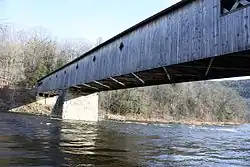 The West Dummerston Covered Bridge is a historic covered bridge spanning the West River in Dummerston, Vermont, between Vermont Route 30 and Camp Arden Road. Built in 1872, it is at 280 feet (85 m) the longest covered bridge entirely within the state of Vermont. It was listed on the National Register of Historic Places in 1973.[1]