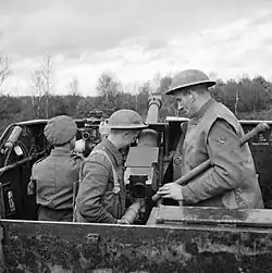 Another regiment, 14th RHA, was formed in India on 1 September 1942.[59] It commanded 414th (Essex Yeomanry) Battery from 104th RHA, 524th Battery (formerly independent) and the newly formed 525th Battery.[60] The Regimental Headquarters, 524th and 525th Batteries were disbanded on 27 April 1946 and 414th Battery was placed in suspended animation in Middle East Land Forces on the same date. 414th Battery was reconstituted in 304th (Essex Yeomanry) Field Regiment, Royal Artillery on 1 January 1947.[61]