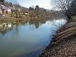 Between the years of 1905 and 1931, four small dams were constructed by the Clarksburg Water Board on a sixteen-mile (26 km) stretch of the river upstream (south) of Clarksburg, for the provision of local drinking water. While the dams in later years have come to be regarded as good fishing areas,[8] the Water Board is working with the U.S. Fish and Wildlife Service on plans to remove them.[16] In 2016 removal of three of the dams was completed in an effort led by U.S. Fish and Wildlife Service, the removed dams being: West Milford, Two Lick, and Highland Dams.[17][18] Removal of the dams is claimed to have improved public safety, recreation access, water quality, and ecological connectivity.[19]