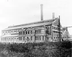 The first power station at Canning Town was opened by West Ham Borough Council in 1904, in part to supply the borough's tramways. It replaced an earlier station built in 1898 at Abbey Mills. The station was extended several times between 1904 and 1930, making West Ham one of the largest municipal electricity suppliers in London.[1]