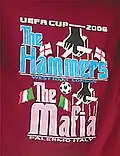 In 2006, twenty West Ham fans appeared in an Italian court following their arrest after fights with rival supporters in Sicily before and after West Ham's game against Palermo in the away leg of their 2006–07 UEFA Cup game. At the home leg fans had bought T-shirts bearing the slogan "the Mafia" – a reference to Sicily being the home of the Cosa Nostra. This was seen as antagonistic by Palermo fans. Six West Ham fans, six police officers and five locals suffered minor injuries in fighting in Sicily. Rival fans threw bottles and chairs in the city's Teatro Massimo district. 500 people were involved in the brawl and police officers were attacked. It took police in riot gear more than an hour to bring the violence under control. An eyewitness said, "West Ham fans behaved like animals, roaming the streets, bottles in hand searching for anyone to fight".[53] More than 2,500 West Ham fans travelled to Palermo for the game.[54]
