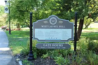 - ^ a b c "West Laurel Cemetery". lmconservancy.org. Lower Merion Conservancy. Retrieved September 5, 2022.