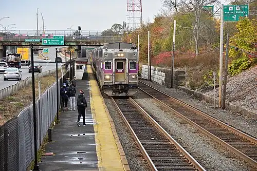 Design for an accessible platform on the north side of the tracks reached 30% in November 2020 and was expected to be complete in spring 2022.[9] The designs were later changed to have two platforms to reduce operational impacts. The new design reached 30% completion in early 2022. A ramp was added to the design scope at that time, delaying expected design completion to February 2024.[10] Drilling for geotechnical surveying took place in October–November 2022.[11][12] Design work for the Newton stations was paused at 75% completion in September 2023 because project costs had risen to $255 million.[13]