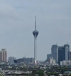 West Pearl Tower (Chinese: 四川广播电视塔) is a 339-metre-high (1,112 ft) tower built of reinforced concrete located in Chengdu, Sichuan Province, China. West Pearl Tower started construction in 1992 but construction was halted later in the year due to budgeting problems. Construction restarted in 1998 and was completed in 2004. It was mainly built to help TV networks across Chengdu but since then it has expanded to include a revolving restaurant with a 360 degree view of the city, and a recreational and commercial mall for Chengdu.