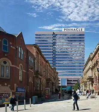 Pinnacle (formerly West Riding House) is an 80-metre (260 ft) and 20 storey tall office building in Leeds, West Yorkshire, England,[1] which was completed in 1973.[2] The building cost £3.6 million (equivalent to £54,992,000 in 2023) to build in 1973.[3] It was the tallest building in the city until 2005 with the construction of Bridgewater Place.