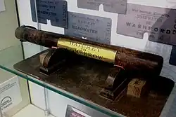 In 1911 A.R. Angus, an Australian inventor, brought two locomotives onto the lower section of the line to test and demonstrate an automatic signal warning device.[86][87] The demonstration of the system took place at Kentsford on 5 July 1912, which turned into something of a gala for local people, watching two hired GWR tender locos, the only tender locos to work this line, being brought safely to a halt rather than the anticipated head-on collision.[88][89][90] Testing of this system continued intermittently until the outbreak of war.
