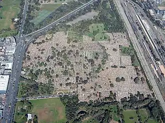 ![]() Aerial view of the West Terrace Cemetery (also seen are Anzac Highway and West Terrace) | |