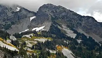 West Unicorn Peak is the second-highest point in the Tatoosh Range which is a sub-range of the Cascade Range.[1] It is located south of Mount Rainier within Mount Rainier National Park, in Lewis County of Washington state. The nearest higher peak is Unicorn Peak, 0.17 miles (0.27 km) to the east-northeast.[1] Precipitation runoff and meltwater from the peak's small glacier, Unicorn Glacier, drain into tributaries of the Cowlitz River.