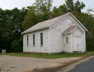 The school is a weatherboarded building, constructed on a foundation of sandstone and covered with a slate roof; additionally, it features brick details.[3] It features a simple rectangular floor plan, measuring 35 feet (11 m) long and 25 feet (7.6 m) wide. Although now over 150 years old, the school remains in fine condition; it is believed to have been preserved better than any other extant one-room school in the area.[2]