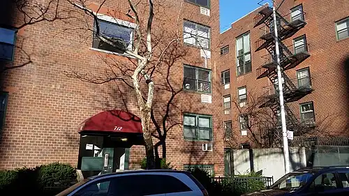 The houses are scattered in an area bounded by Morton, West, Bank and Washington Streets. In 1961, New York Mayor Wagner planned to redevelop that area with high rise housing.[1] West Village resident Jane Jacobs led an effort to stop that development in favor of the West Village Houses which were smaller-scale and preserved existing structures.[2] Perkins and Will designed the buildings. The effort to build the houses was finally approved in 1969, higher costs required a second approval in 1972 and then construction began.[3] Because of their long construction during a period of high inflation, when they were completed in 1975 common charges for prospective residents were high, they had difficulty finding residents and required further subsidy.[4]