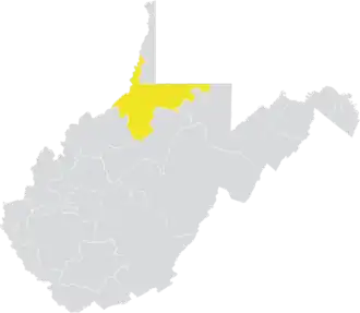The district is located largely within West Virginia's 1st congressional district, with a small portion extending into West Virginia's 2nd congressional district, and overlaps with the 4th, 5th, 6th, 7th, 33rd, 34th, 50th, and 51st districts of the West Virginia House of Delegates.[3] It borders the states of Ohio and Pennsylvania.
