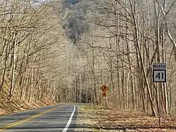 West Virginia Route 41 (WV 41) is a 64.8-mile-long (104.3 km) north–south state highway in the central part of the U.S. state of West Virginia. Its southern terminus is at WV 210 in Beckley. Its northern terminus is at WV 55 about 1 mile (1.6 km) west of Calvin.