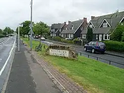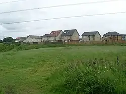 Westburn was transformed with the arrival of its own steel works in 1921. The Redpath Brown & Co firm was established in 1802 in Edinburgh[18] and had premises in Glasgow by 1905 but needed a bigger site and identified Westburn, on the road to Newton House as the location for their new works. The business proved very successful, and a network of houses (around 160 dwellings, mainly cottage flats) was built alongside for the workers.[19] A group of uncommon black 'Swedish timber' houses (64 dwellings) was also constructed on the south side of Westburn Road up to the railway lines in the late 1930s;[20][21] the same style can be seen in pockets of similar numbers within Lanarkshire including at High Blantyre, Larkhall, Allanton, Moodiesburn and Birkenshaw,[22] while other less distinctive examples using the materials are found in many parts of Scotland.[23][24]