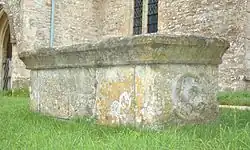 A west gallery was installed, presumably in the 18th century. In 1855–56 the gallery was removed and the church was restored under the direction of the Oxford Diocesan Architect G.E. Street,[2] who also added the battlements to the nave parapet. The then Vicar, Rev. E.L. Lockyer, painted the screen[4] and the decorated patterns on the chancel and aisle arches. The current rood cross is a 19th-century Gothic Revival addition.[6] St. Edward's is a Grade II* listed building.[4] In the churchyard just south of the church are a 15th-century tomb chest that has a quatrefoil at either end, and the base and steps of a late medieval stone cross.[2] The tower has three bells, which are notable for being moved by half-wheels.[6] The second bell was cast by John Mitchell of Wokingham[7] in about 1490.[8] Mears and Stainbank of the Whitechapel Bell Foundry cast the tenor and treble bells in 1904.[8] St Edward's also has a Sanctus bell that was cast by an unknown founder in about 1699.[8]