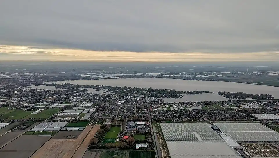 Towns situated on the lakefront include Aalsmeer, Kudelstaart, Burgerveen, Leimuiden, and Rijsenhout.