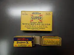 The Western Cartridge Company was an American manufacturer of small arms and ammunition formerly based in East Alton, Illinois. Founded in 1898, it was the forerunner of the Olin Corporation, formed in 1944, of which Western was absorbed into.[1] Prior to that, Western acquired the Winchester Repeating Arms Company after Winchester went into receivership in 1931.[2] The two would merge in 1935 to form Winchester-Western.[3]
