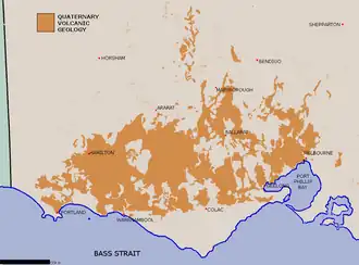 The Western District comprises western regions of the Australian state of Victoria. It is said to be an ill–defined district, sometimes incorrectly referred to as an economic region,.[1] The district is located within parts of the Barwon South West and the Grampians regions;[2][3] extending from the south-west corner of the state to Ballarat in the east and as far north as Ararat. The district is bounded by the Wimmera district in the north, by the Goldfields district in the east, by Bass Strait and the Southern Ocean in the south, and by the South Australian border in the west. The district is well known for the production of wool. The most populated city in the Western District is the Ballarat region, with 96,940 inhabitants.[4]