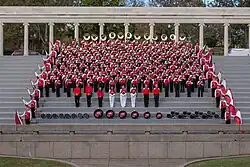 The Big Red Marching Band (also known as The Pride of the Hilltoppers) is the name of the marching band organized by Western Kentucky University. The band was formed in 1925 at what was then Western Kentucky Teachers College. Around 1939 the band became a regular feature at every home game of the WKTC football team and raised its participation above 100 members for the first time. The music department began to expand and establish a chamber wind and symphonic concert band program over the next few decades and by 1993 the band had achieved a total of 170 members.[1]