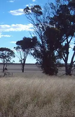 Western Mallee is situated on south-eastern parts of the Yilgarn craton. It has a gently undulating landscape, with somewhat more relief than eastern parts of the Mallee region. There are a variety of soils, including clays and silts over kankar; sand; lateritic pavements; and granite outcrops. Gypsum dunes also occur in the area. The subregion has occluded drainage, with a number of lakes, both saline and fresh.[1]