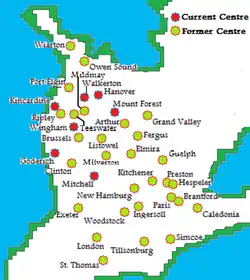 From 1972 until 1976, the Central league (now the Western league) featured a variety of teams from the Niagara region of Ontario. In 1974, the majority of these teams broke away to form the Niagara & District Junior C Hockey League. In 1976, the remainder of these teams walked away to form the Southwestern Junior B Hockey League, which folded in 1978 and the remaining teams went mostly to the Niagara District league to help form a Western division.
