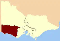 Western Province was defined in the Victorian Constitution Act, 1855, as : "Including the Counties of Ripon, Hampden, Heytesbury, Villiers, Normanby, Dundas, and Follett."[3]