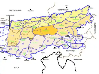 | States of Austria, regions of Italy | Tyrol, Carinthia, Salzburg, Trentino-Alto Adige/Südtirol |