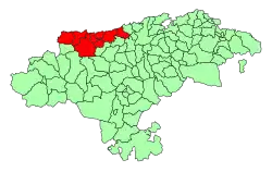 As its own name indicates, this comarca extends over the western coast of the autonomous community, from its border with Asturias by the mouth of the Deva River, to the Saja-Besaya mouth in Suances, although these limits may vary depending on the source, since this comarca, as in the rest of Cantabria's, is not regulated, but there are common characteristic elements in the municipalities that belong to it.