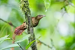 The western woodhaunter (Automolus virgatus) is a species of bird in the Furnariinae subfamily of the ovenbird family Furnariidae. It is found in Colombia, Costa Rica, Ecuador, Honduras, Nicaragua, and Panama.[2]