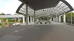 Westfalenhallen is officially a terminus station of the Dortmund Stadtbahn (urban rail) line U45 and U46, part of the Verkehrsverbund Rhein-Ruhr (VRR). Practically, it is not a terminus station: The trains of the line U46 continue as U45 to the central station, while the U45 trains usually continue as U46 to Brunnenstraße. In case of football matches of Borussia Dortmund or other events at Westfalenstadion, the trains serve the terminus station Stadion.