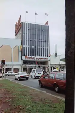 The original centre was half the size it is today, and was first to have a Hoyts cinema inside the centre (later closed sometime in the 1980s). Westfield Burwood was partially built on the site of the old Hoyts Astor theatre which was rebuilt as the Hoyts Burwood. Westfield Burwood featured Farmers, Coles New World, Mark Foy's and Winns.[4] In 1972 the centre expanded by acquiring land south on Victoria Street and a Fosseys store opened on that site which operated until its closure in 1993 and was taken over by Target. Westfield Burwood was again redeveloped in 1976 with the addition of Nock & Kirby. In November 1976, the Farmers store was rebranded to Myer which was then renamed Grace Bros on 18 April 1983.[5]