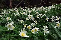 The wood is mainly coppiced hazel, and other tree include small-leaved lime, crab apple, oak, ash, sweet chestnut, field maple and rowan. There are flowering plants such as wood anemones and foxgloves.[1]