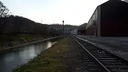A large flood control project stretching from the 1950s through the '60s included a change to the banks of the Turtle Creek waterway that required the removal of Interworks tracks between Wilmerding and Pitcairn, and the decision was made not to rebuild them. Thus on September 30, 1962, the rail link on the right bank of Turtle Creek between Trafford and Wilmerding was severed, and nearly all of its track between these two boroughs was eventually removed.[7] Most of this track-bed now lies abandoned, save for a fraction of a mile in Wilmerding which became the Airbrake Avenue Walking Trail.[16][17] Proposals exist to convert the rest of the abandoned line into a rail-trail as well.[18]