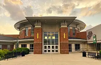 Westlake High School was rebuilt and completed in 2013.[5] The high school features a rotunda housing the cafeteria. Academic wings are divided into two floors, with classrooms grouped in sections, known as wings. The A wing houses Miscellaneous rooms, the B wing houses English on the first floor, and Mathematics on the 2nd floor. The C wing houses the sciences, and is only one floor. The D wing houses history on the first floor and Foreign Language/ESL on the 2nd floor. The E wing hosts Arts and T&E classes. There is no 2nd floor. The F wing hosts music education and the large Performing Arts Center, housing 400 seats and a mainstage with a pit.