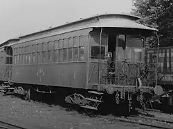 The line had six 'cars' when it opened in 1897. These were bogie carriages, 49 feet 3 inches (15.01 m) long over their buffers with American-style open end platforms and both first and second class seating. They had been built by the Lancaster Carriage and Wagon Works for the Argentine Republic Railway but the sale to that company was never completed. They were taken out of service in the early 1920s, but three saw further use from 1937 until the line closed.[26] An additional coach was later bought from the Great Central Railway, a small four-wheel vehicle used as a 'smoking car' during the summer. It had been renumbered into the freight stock series by 1913 and its underframe was stored in the siding at Wick St Lawrence.[27]