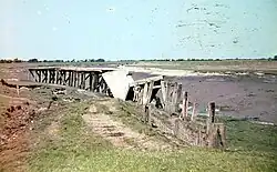 A short branch was opened in 1915 at Wick St. Lawrence to serve a jetty which the railway company built on the River Yeo. There was a loop on the branch from which a single line ran out onto the jetty which had a concrete platform supported by wooden piles.[13]